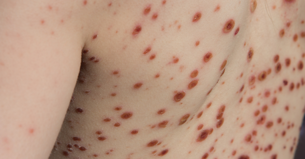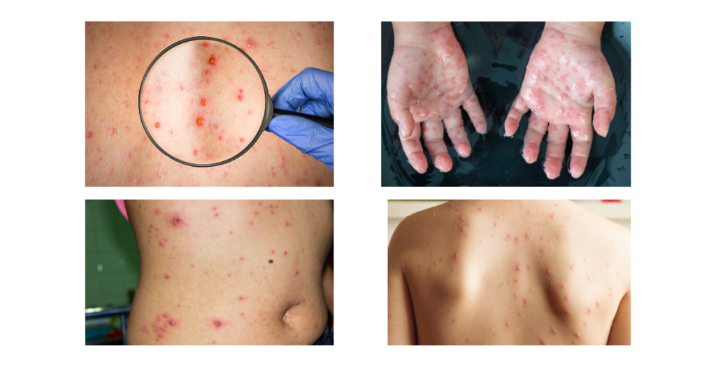 The rash commonly appears on the face, hands, feet, chest, and genital areas, but it can also spread to other parts of the body. In severe cases, lesions may become infected, leading to secondary bacterial infections.